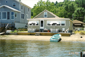 > ONE AND A HALF STORY YEAR-ROUND LAKEFRONT HOME LOCATED DIRECTLY ON THE LAKE IN QUIET NEIGHBORHOOD ON SOUTHERN END OF SARATOGA LAKE
